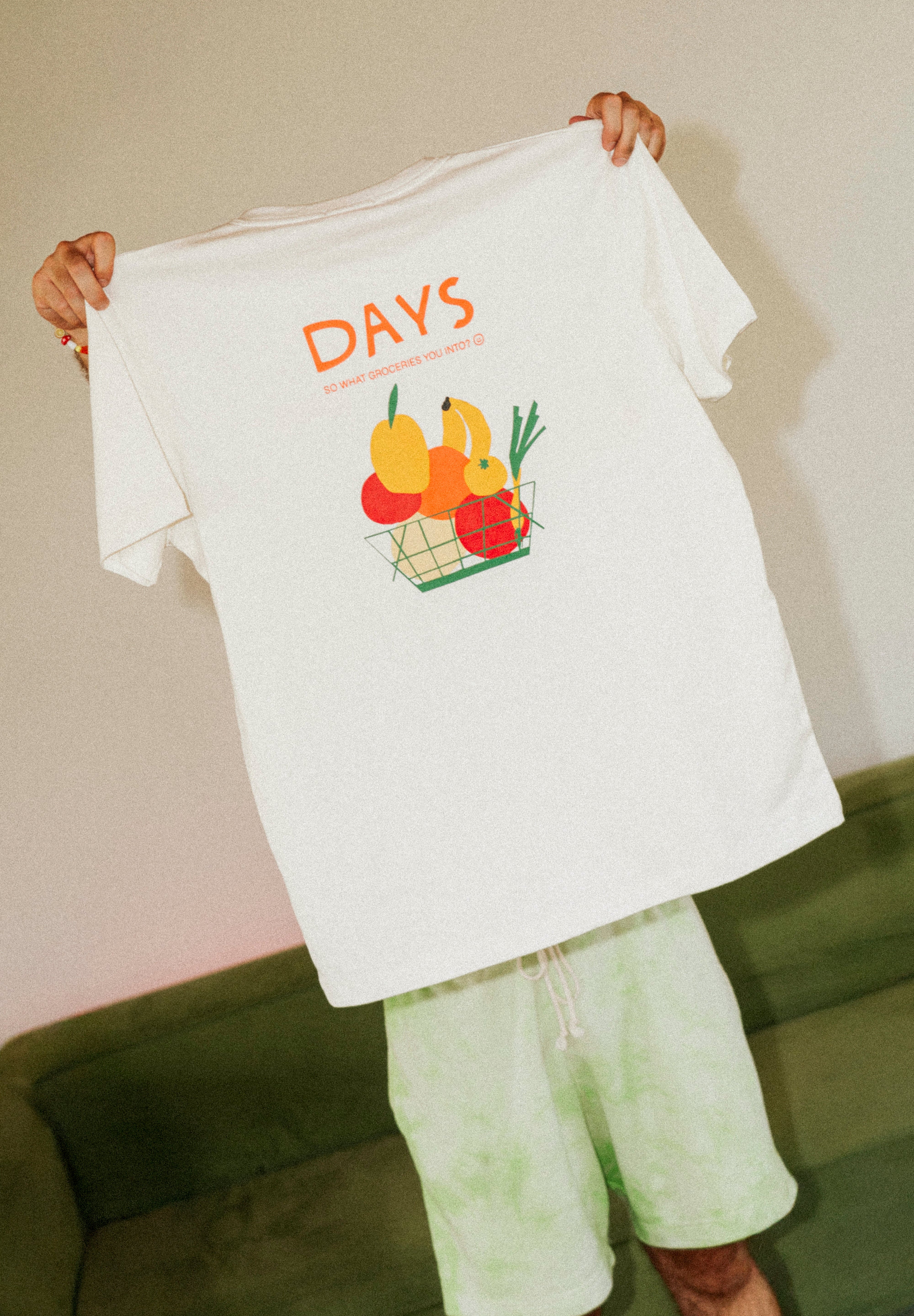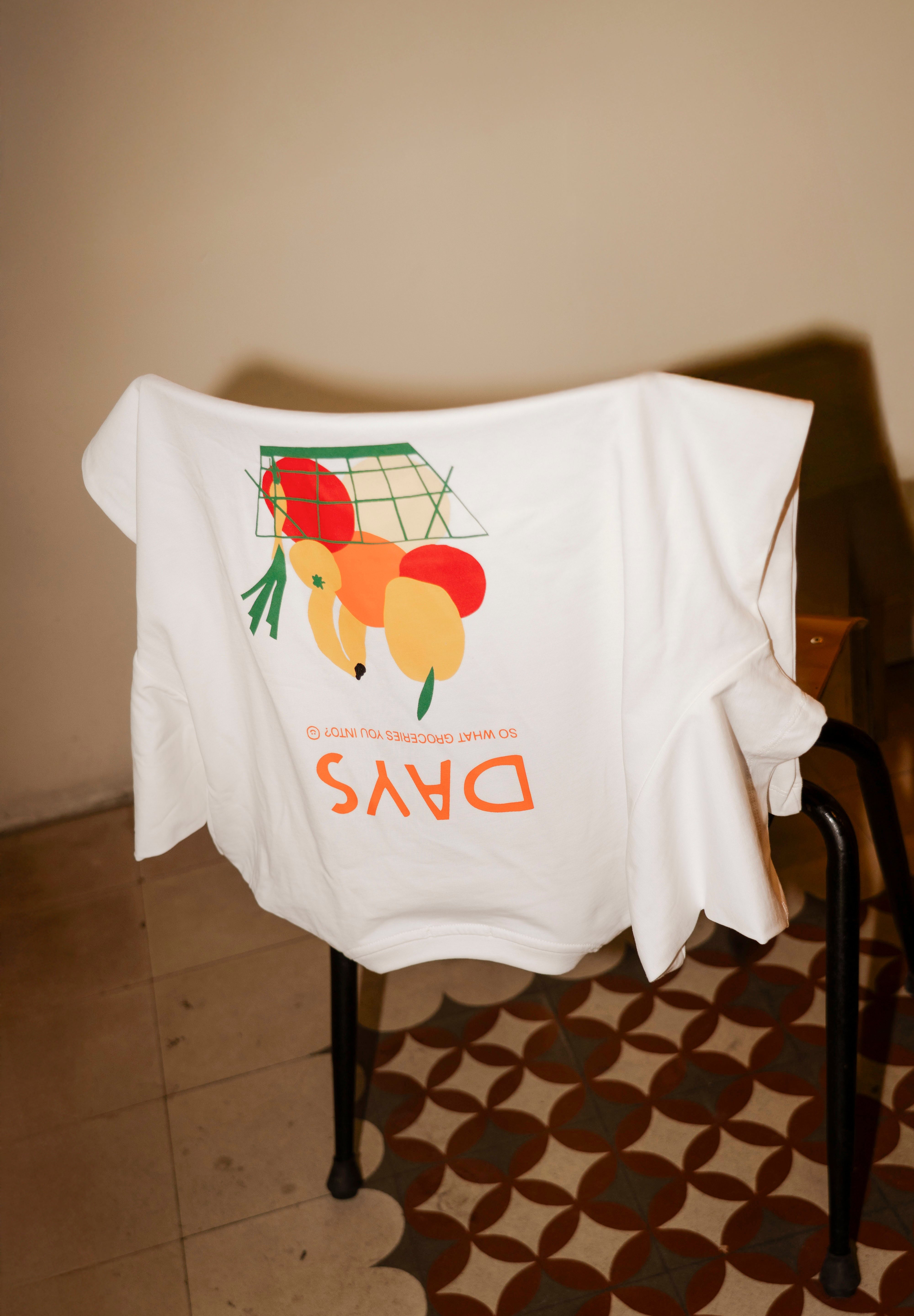 So what groceries you into lately? This one’s for the fruit lovers, the slow-shoppers, and the corner-grocer romantics. Made with 100% cotton and a conversation starter on the back.